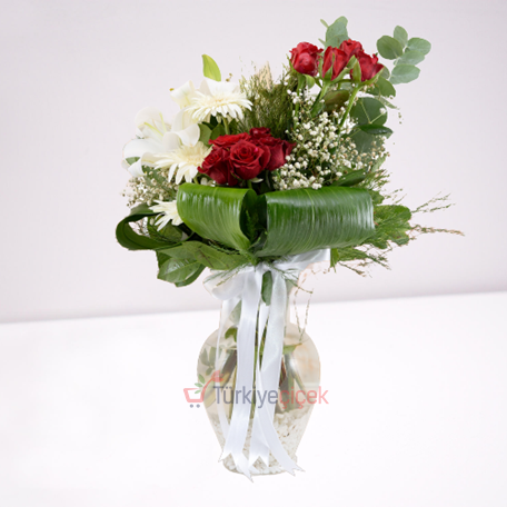 Sevdiklerinizin doğum günlerini, işe ilk başladığı günü, evlilik yıldönümümüzü ya da herhangi bir özel gün de tercih edeceğiniz gül ve lilyumlar sizin için en güzel tercihlerden bir tanesi olacaktır. Çiçek anlamlarına göre hareket eden insanlarsınız muhakkak lilyum ve kırmızı gülün anlamını biliyor olmalısınız. Beyaz lilyum saygı sevgi ve sadakat anlamını taşırken o eşsiz kokusuyla da hediye edildiği insanın başını döndürmeye yetiyor da artıyor bile. Kırmızı güller ise aşkın ve tutku'nun sembolü olmaktadır. Hiç bir zaman vazgeçilemeyen kırmızı güller sizi en iyi şekilde temsil edecektir. Cam bir fanus içerisinde bulunan güller ve lilyumlar boyut yaklaşık olarak 25 santimdir. Ayrıca lilyum ve kırmızı güllerin fanus dibinde bulunan kırmızı taşlar da ayrı bir hava katmaktadır. Turkiyecicek.com olarak sizlere bu güzel aranjmanı sunmaktan keyif duyarız