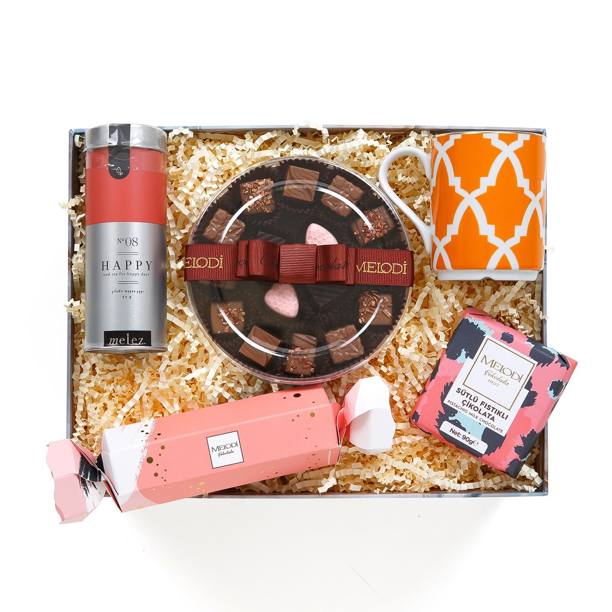 Note: Since the product will be delivered by cargo, it will be delivered within 3-4 working days. Jiffy Special Chocolate specially designed for you in the set. Beyoğlu Chocolate with Extra Milk and Plenty of Pistachio 90 Grams. Happy Herbal Tea, consisting of mixtures of happiness and peaceful herbs. Specially designed Porcelain Mug. Refreshing cologne in a specially designed box.